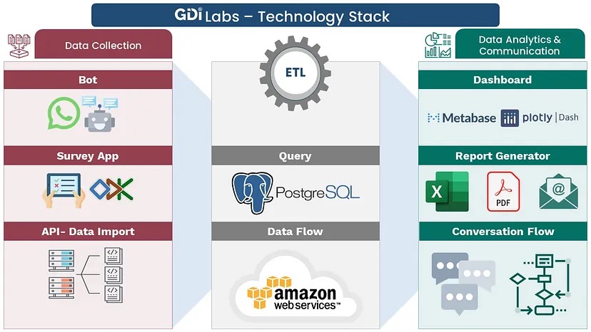 The following tech-stack describes what we do at GDi Labs to enable large scale social impact.